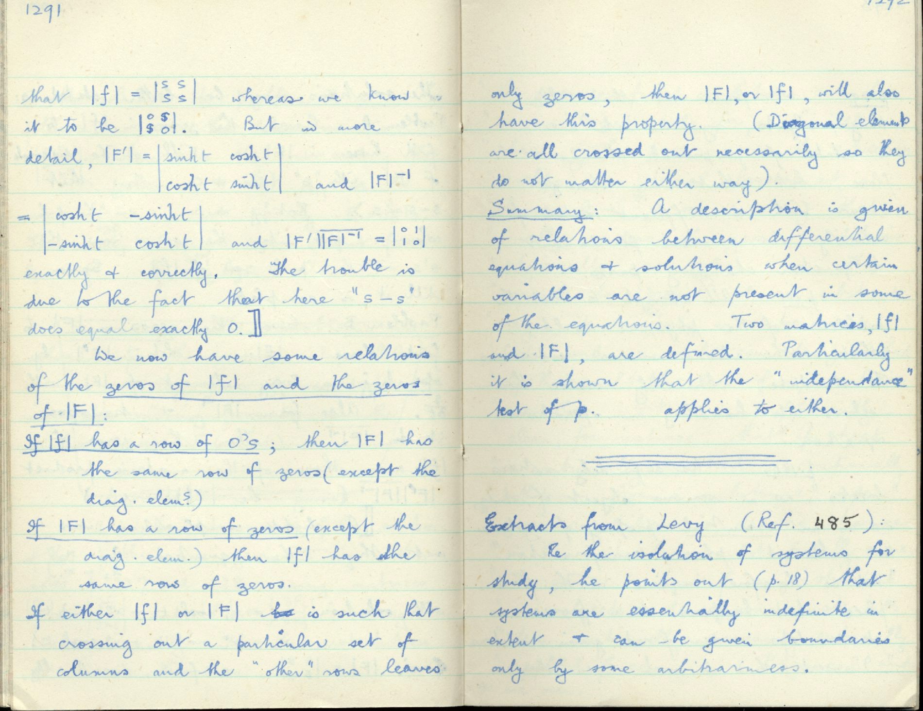 certain variables are not present in some of the equations. Two matrices |f| and |F| are defined. Particularly it is shown that the "independence" test of p applies to either. |