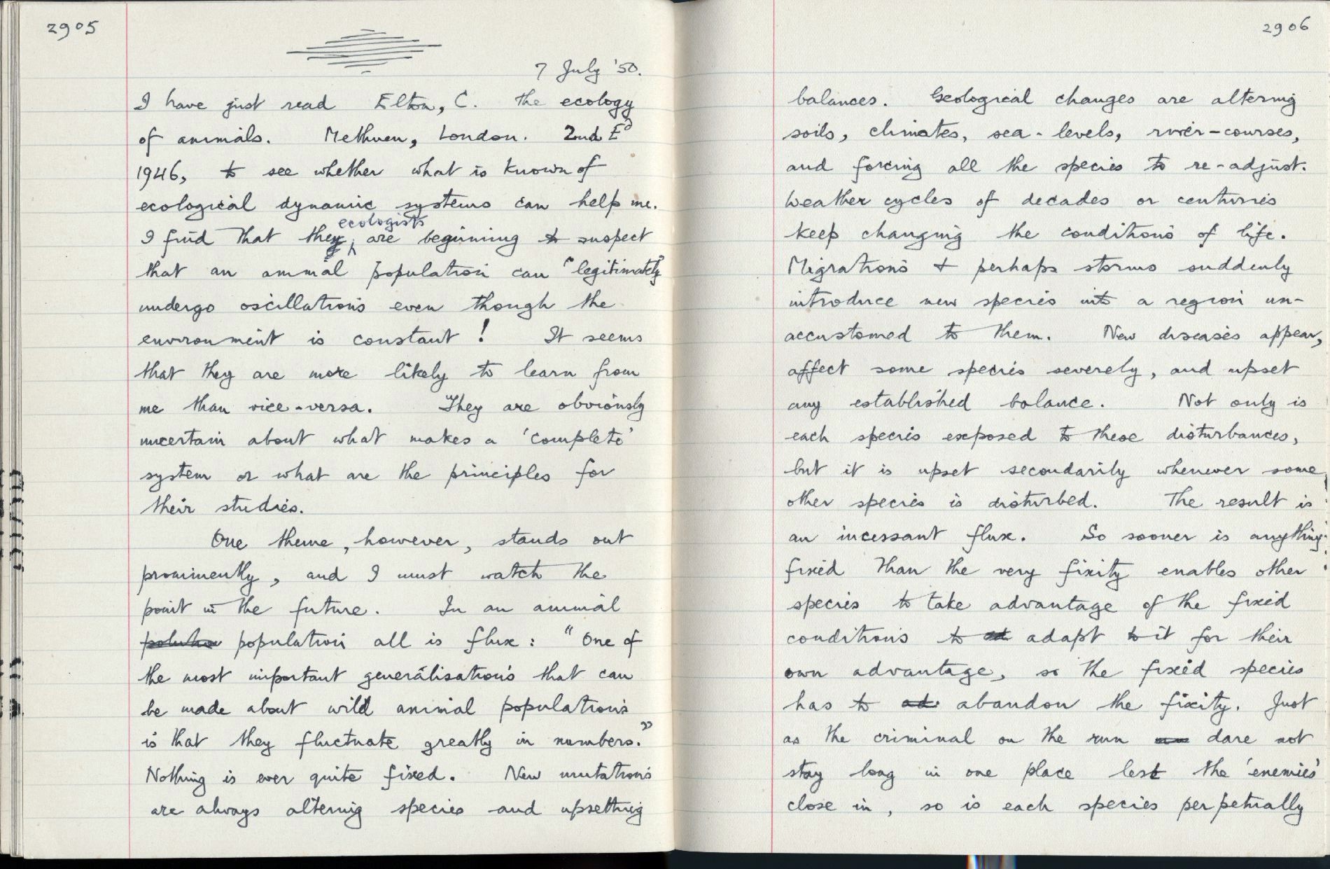 2906. Society [34]: Animal populations fluctuate incessously and their characteristics are always on the change. There is no resting state. 2906. |