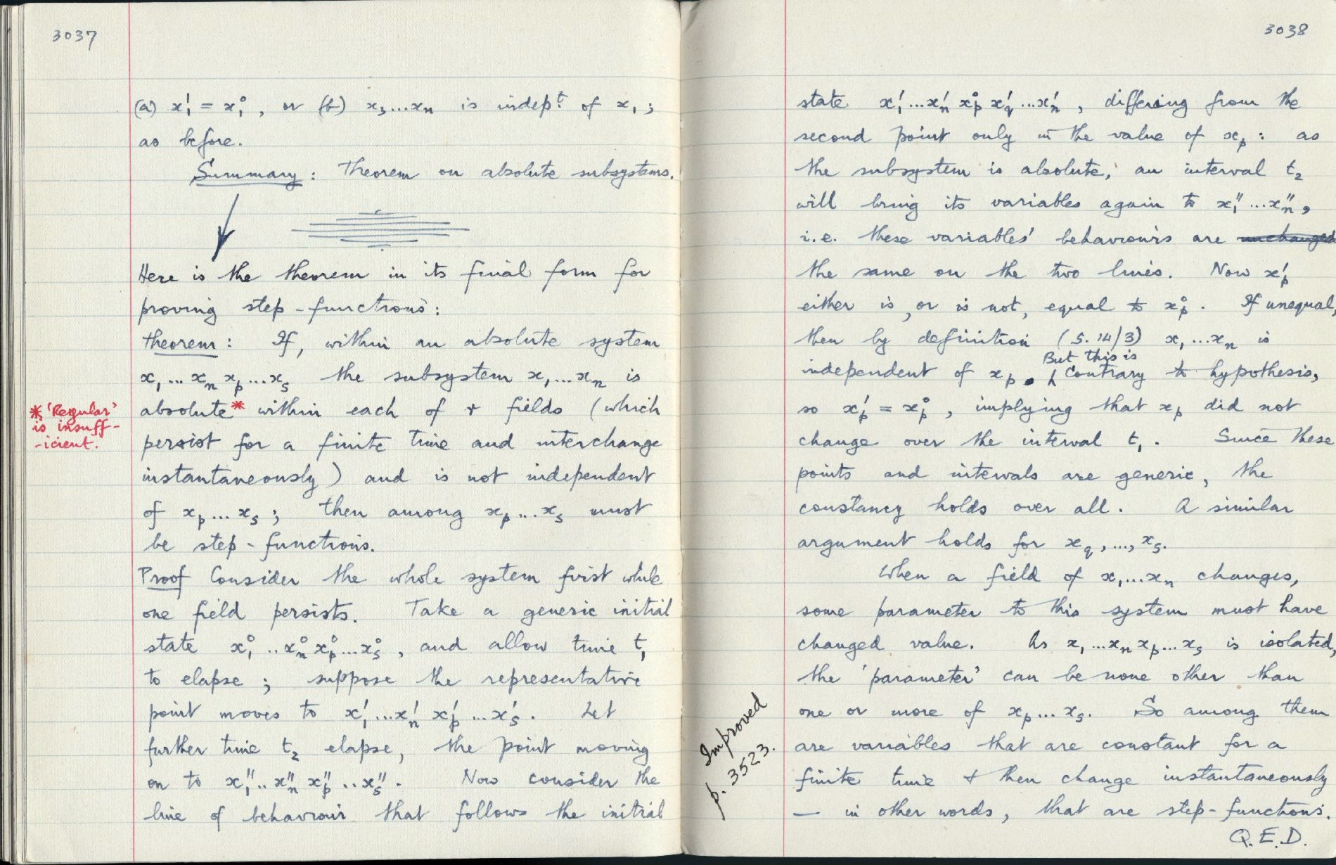 Summary: Theorem on absolute systems. Here is the theorem in its final form for proving step-functions... |