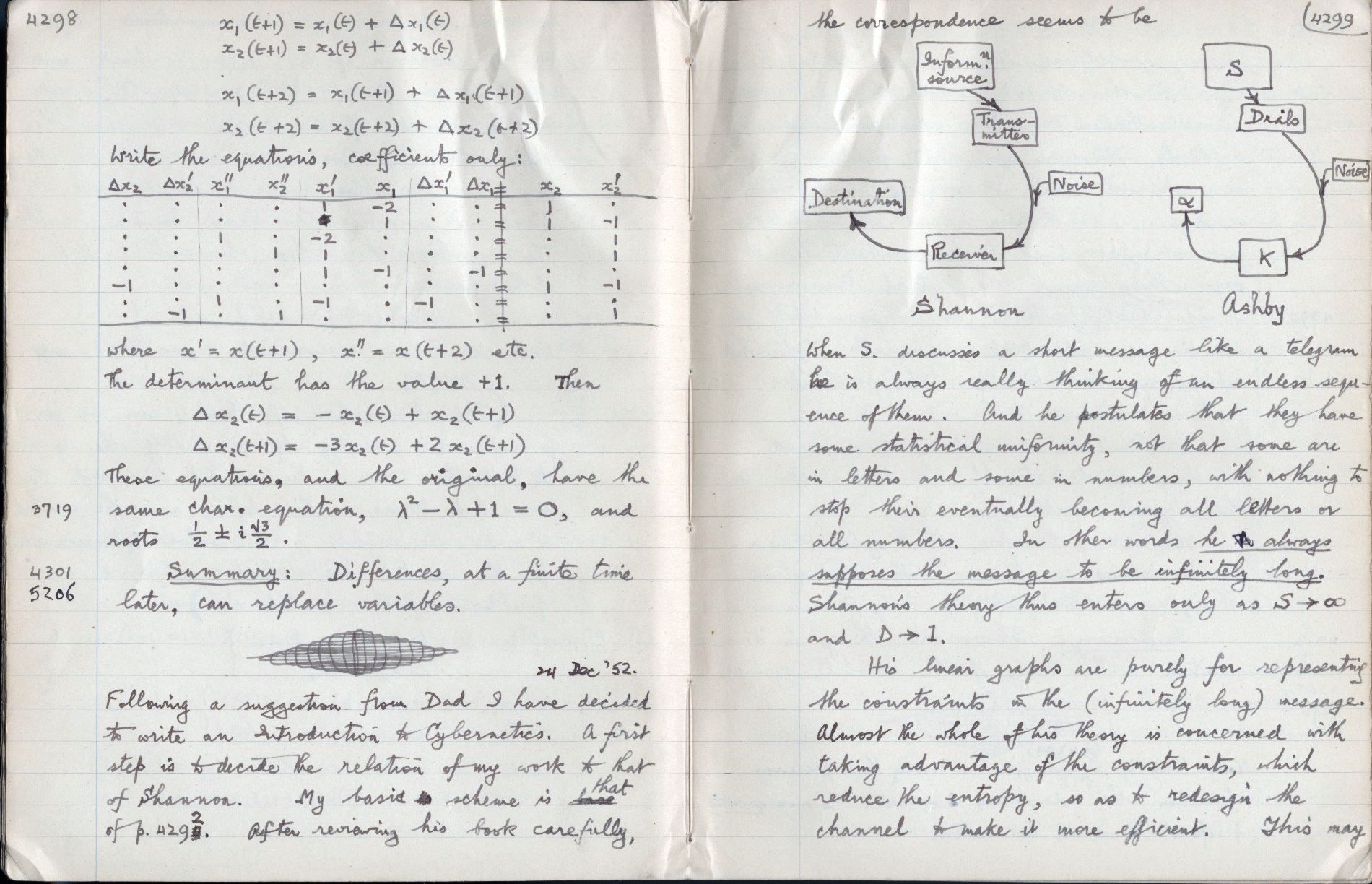 Personal notes [21]: I decide to write Introduction to Cybernetics 4298. Personal notes [26]: The "Introduction to Cybernetics" was, apparently, written at Dad's suggestion. 4298. |
