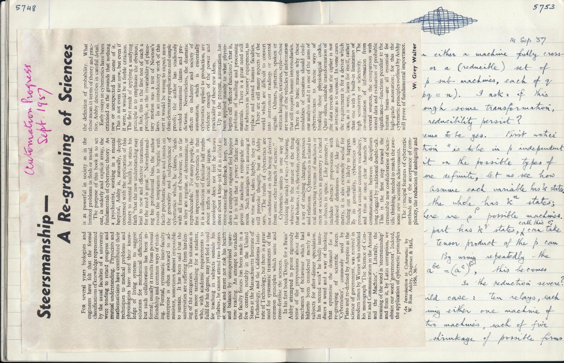 Personal notes [31]: Reviews of the "Introduction to Cybernetics". 5531, 5582, 5630, 5748. |