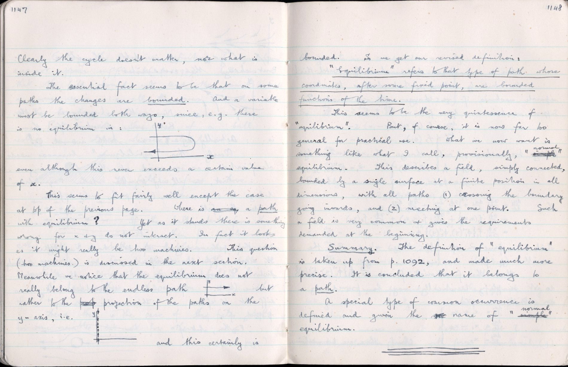 Summary: The definition of "equilibrium" is taken up from 1092, and made much more precise. It is concluded that it belongs to a path A special type of common occurrence is defined and given the name of "normal" equilibrium. |