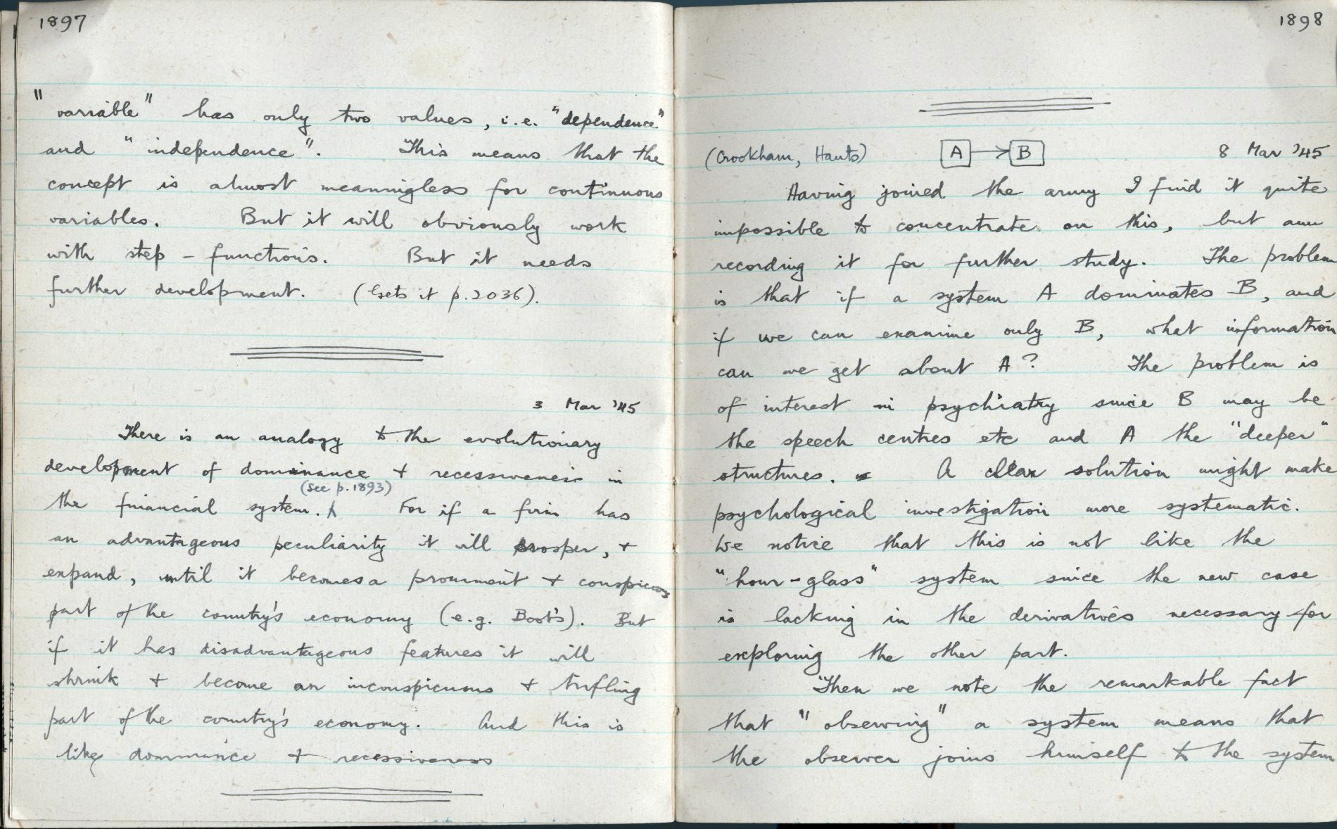Oddments [3]: If A dominates B, study of B cannot reveal the organisation of A, 1898. |