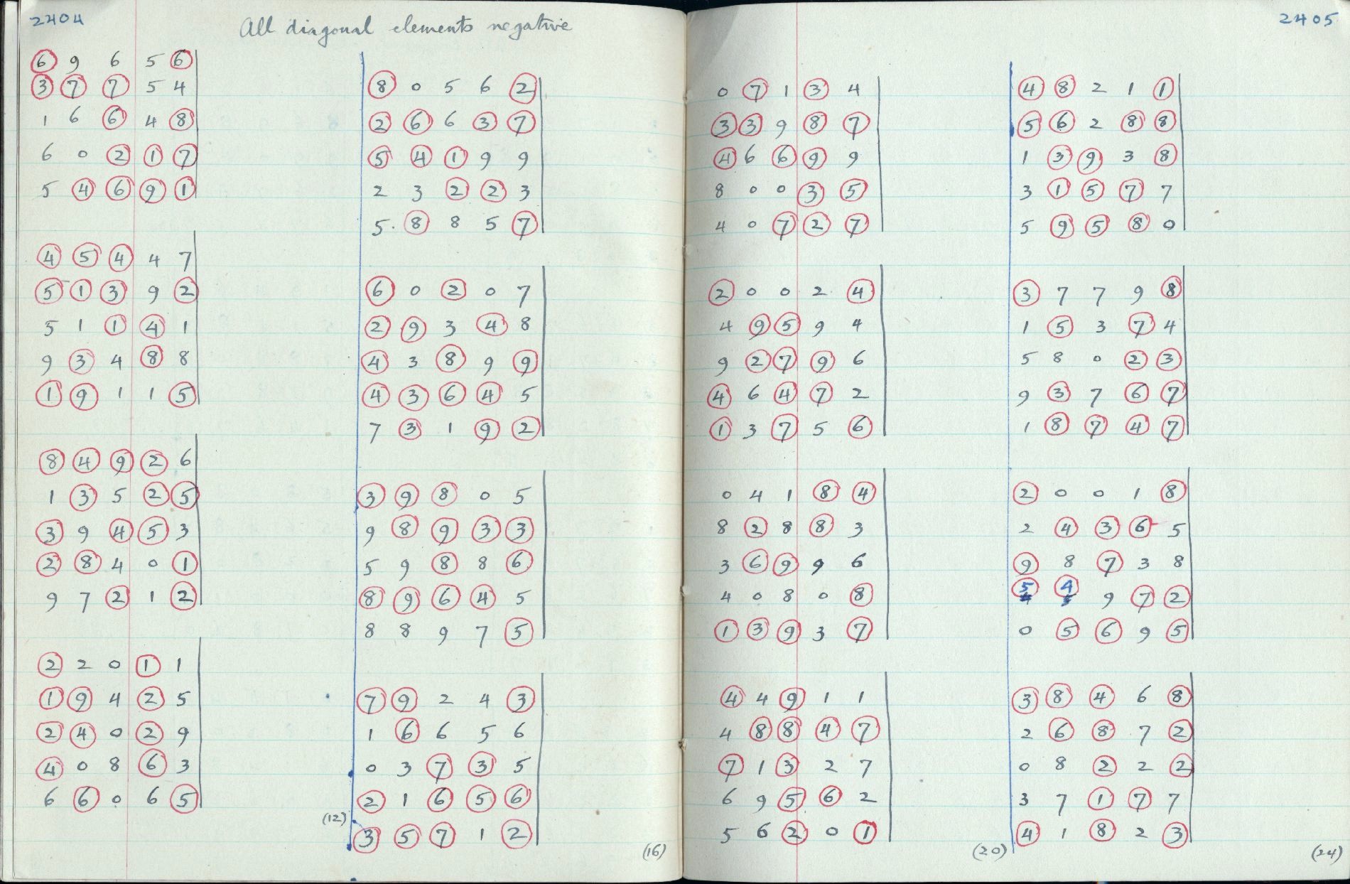 Higher geometry of fields and matrix theory [12]: Lists of numerical matrices suitable for sampling experiments: 5x5 { 2335 2336 2337 2338 2339 2340 2341 2342 2343 2344 2345 2346 2347 2348 2349 }, { 2402 2403 2404 2405 2406 2407 2408 2409 }, 4x4 { 2350 2351 2352 2353 2354 2355 2356 2357 2358 2359 }, { 2380 2381 2382 2383 2384 2385 2386 2387 2388 2389 }, 3x3 { 2368 2369 2370 2371 2372 2373 2374 2375 2376 2377 2378 }, 2x2 { 2362 2363 2364 2365 2366 }