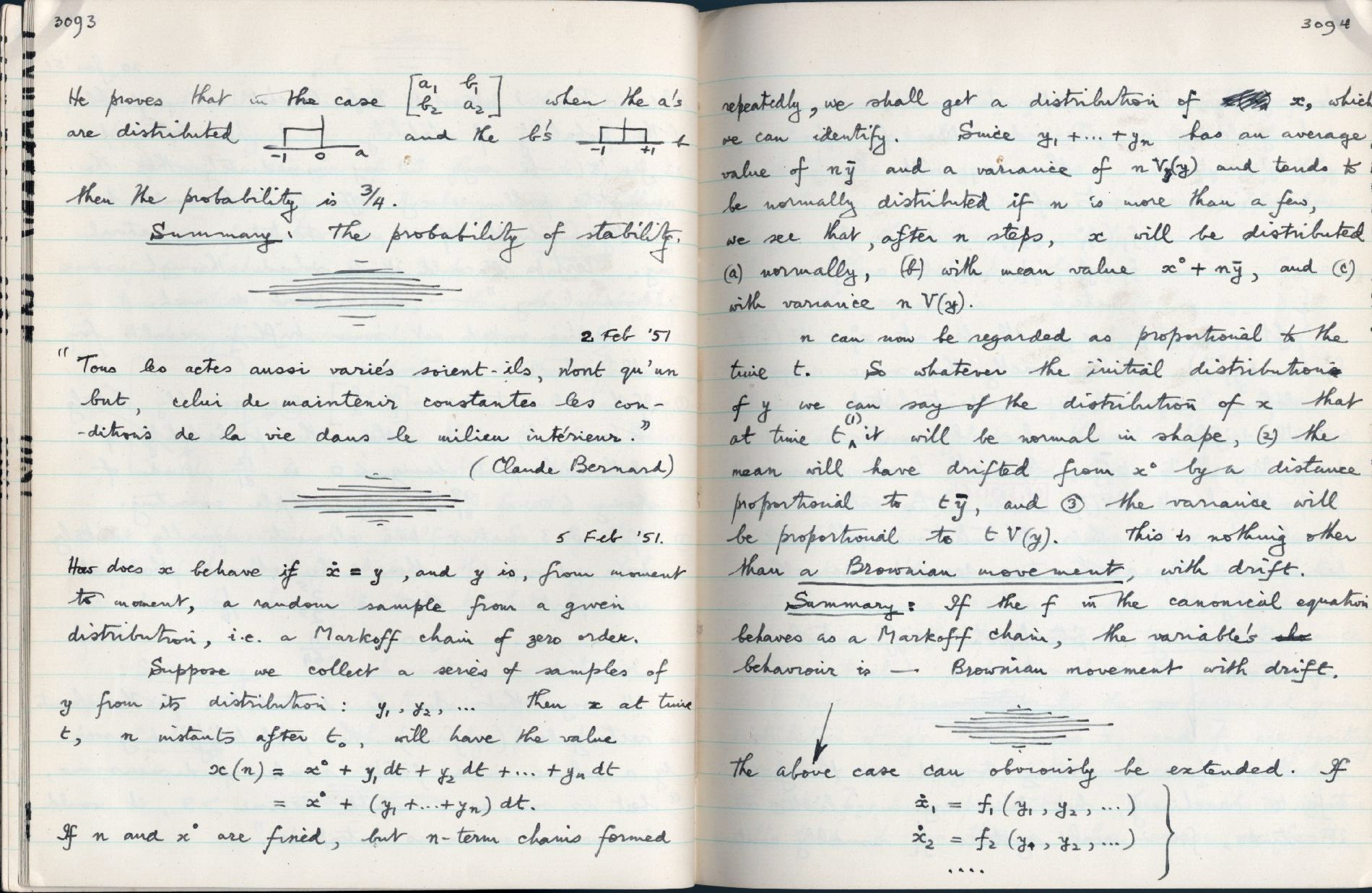 Summary: If the f in the canonical equation behaves as a Markoff chain, the variable's behaviour is
